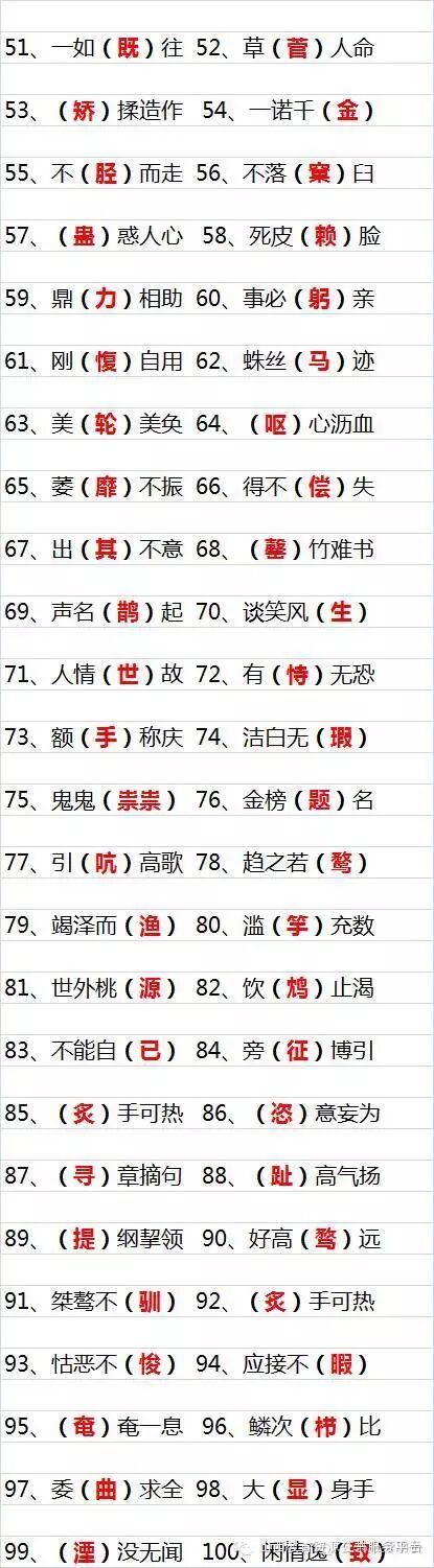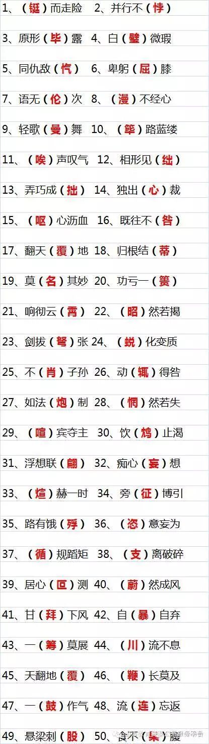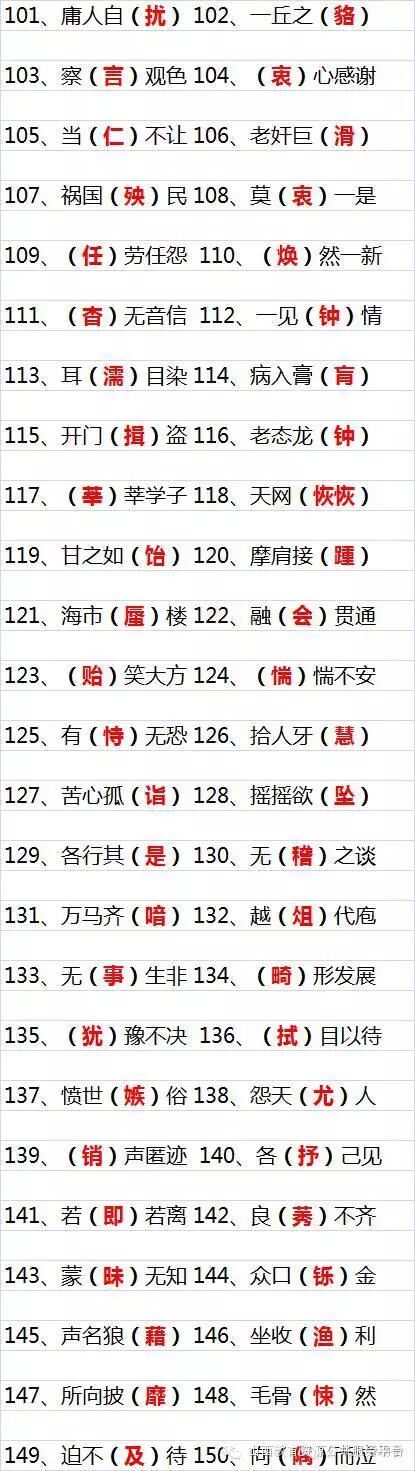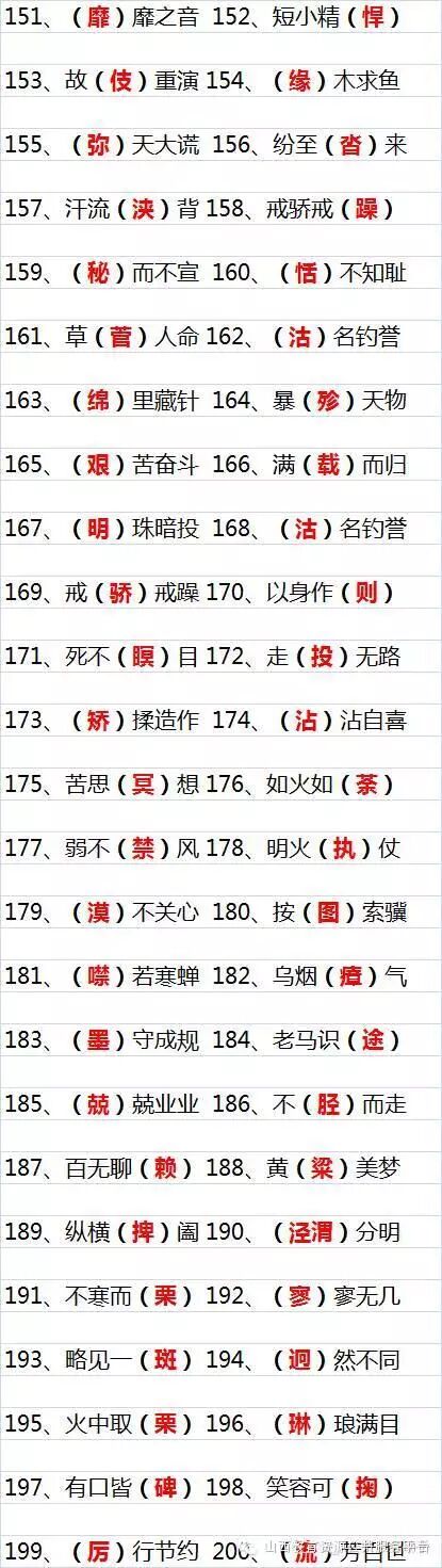 200个中考语文易错成语,括号内红色字体的为易错字: