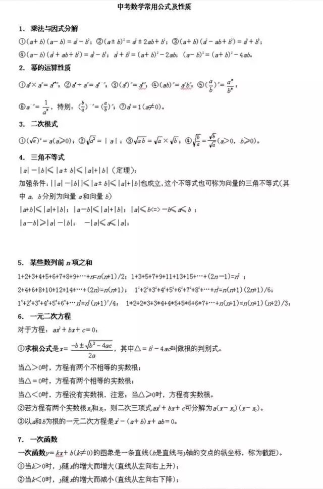 下面是中考数学必须掌握的基础知识点,让孩子先把这些都记牢了。